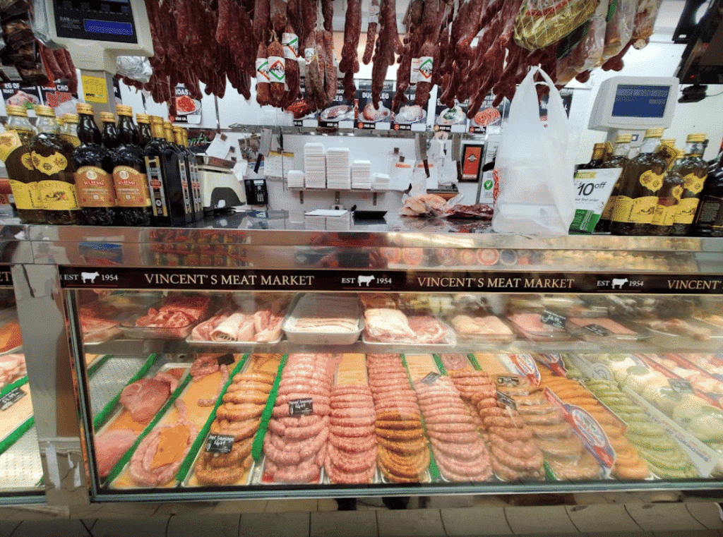 Vincent’s is where traditional Italian butchery meets American excellence. Their cases display everything from perfectly marbled ribeyes and tender filet mignon to house-made Italian sausages seasoned with fennel and garlic using recipes that haven’t changed in decades. The skilled butchers at Vincent’s don’t just cut meat—they understand it, respecting each cut and preparing it with the same care and expertise passed down through three generations.