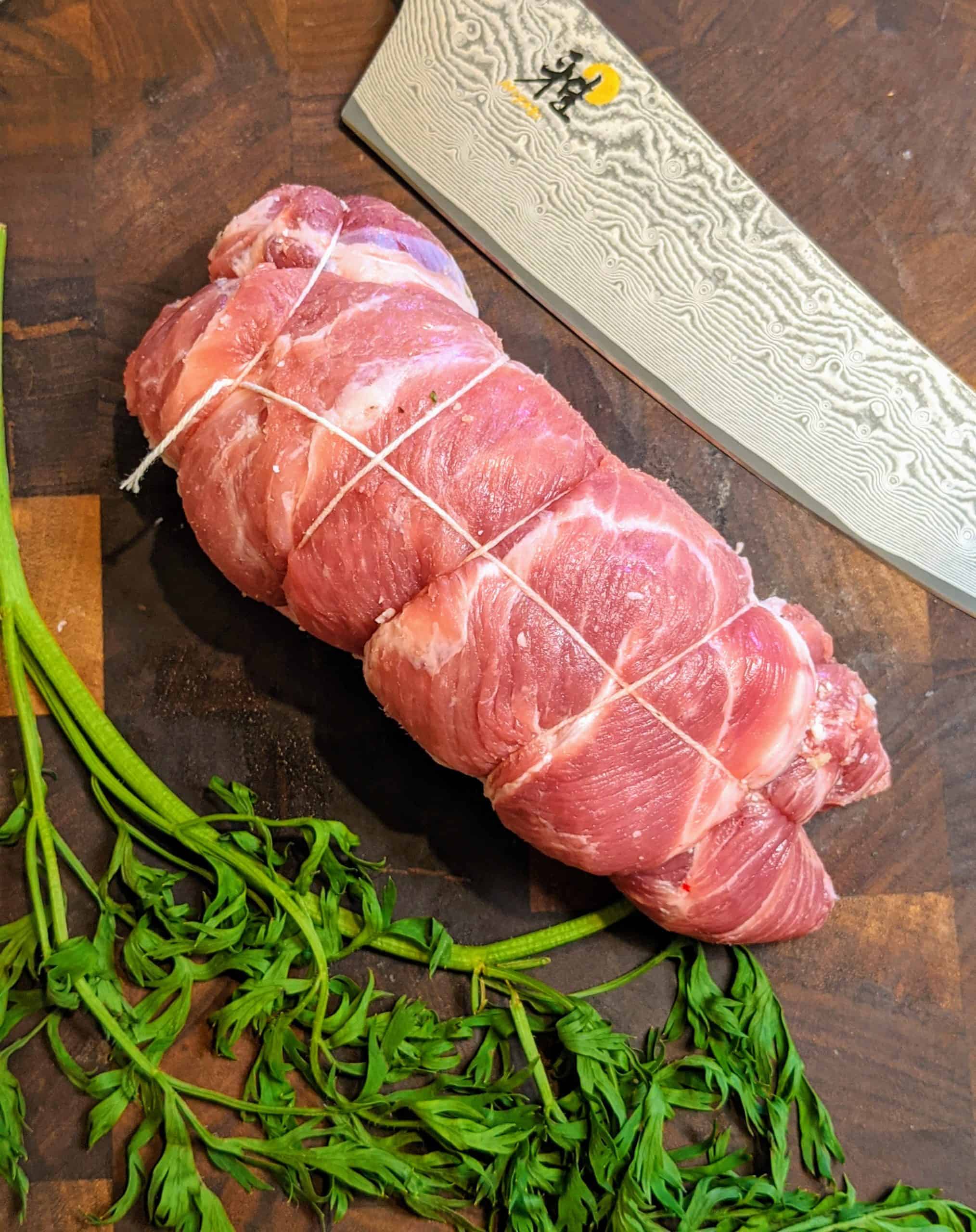 Thinly sliced pork(Pork Butt) rolled up and seasoned with garlic, parsley and parmigiano. Pork Braciole is classic Italian comfort food and a great dish to make on a wintery Sunday afternoon. Stuffed pork rolls, simmered slowly in tomato sauce so the flavors from the stuffing infuse the sauce and the meat becomes fork tender, all while filling your house with the sweet smell of Italian Sunday dinner!